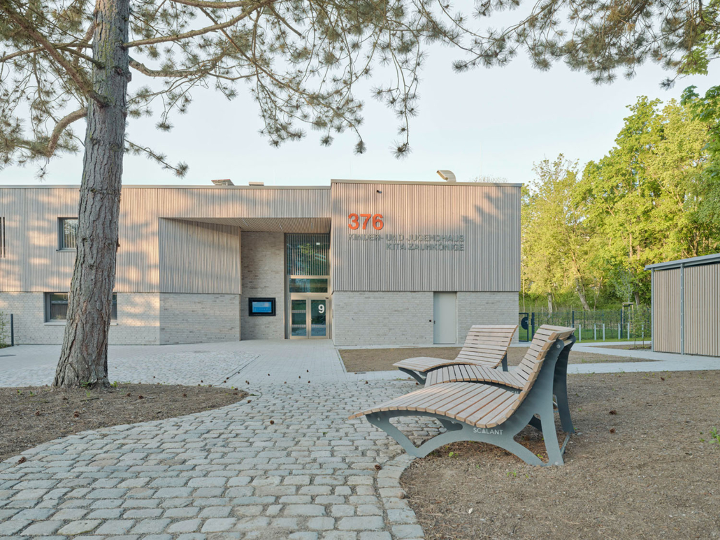 Das Kinder- und Jugendhaus Hallschlag ist eine mit Städtebaufördermitteln unterstützte Rück-, Sanierungs- und Umbaumaßnahme. Das bestehende Jugendzentrum aus dem Jahre 1976 war erkennbar in die Jahre gekommen, entsprach nicht mehr den energetischen Standards und sollte zudem um eine 4-zügige Kindertagesstätte erweitert werden.